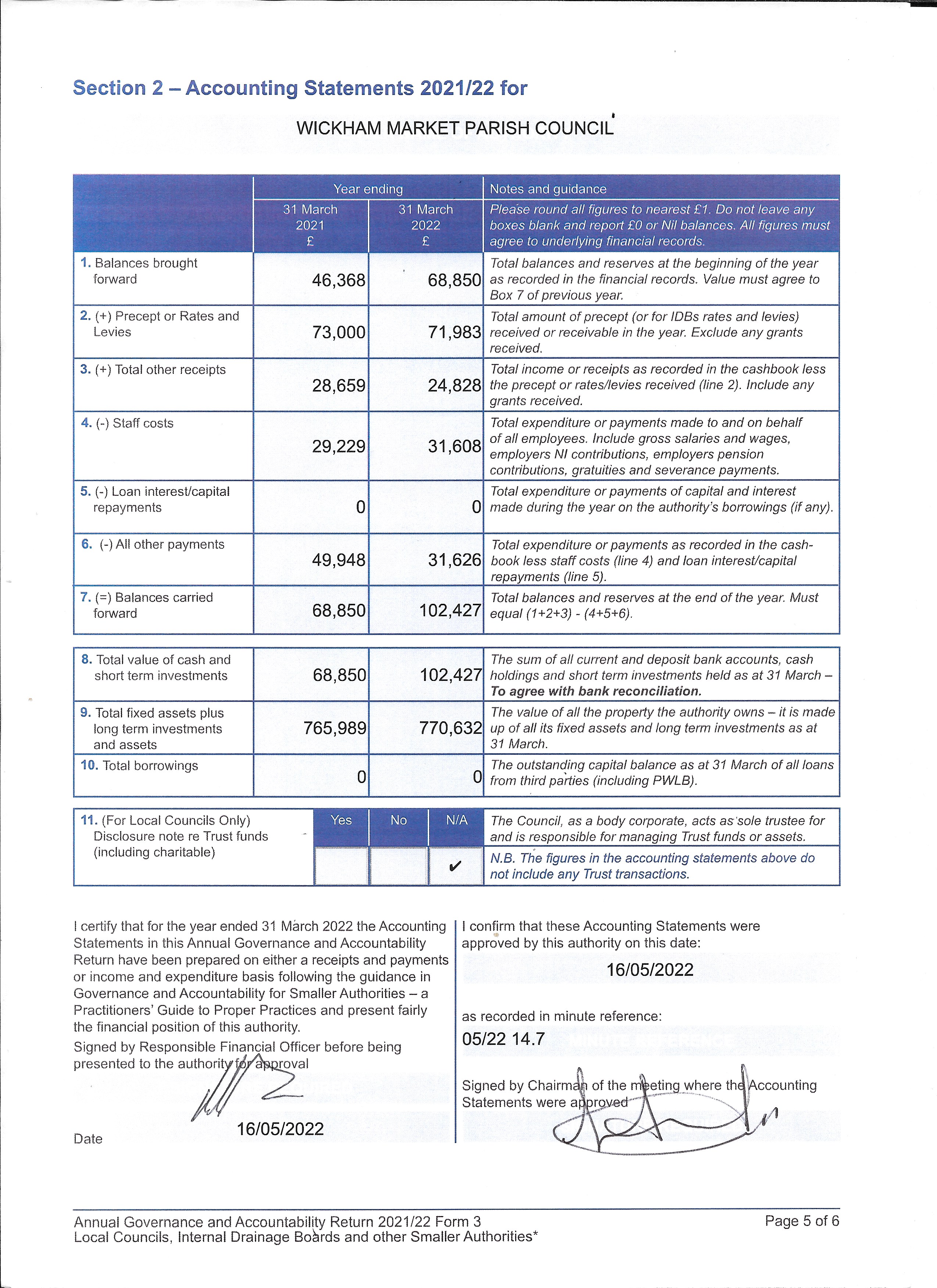 - 7.5: Annual Governance and Accounting Review with Prior Year AGAR to confirm opening balances